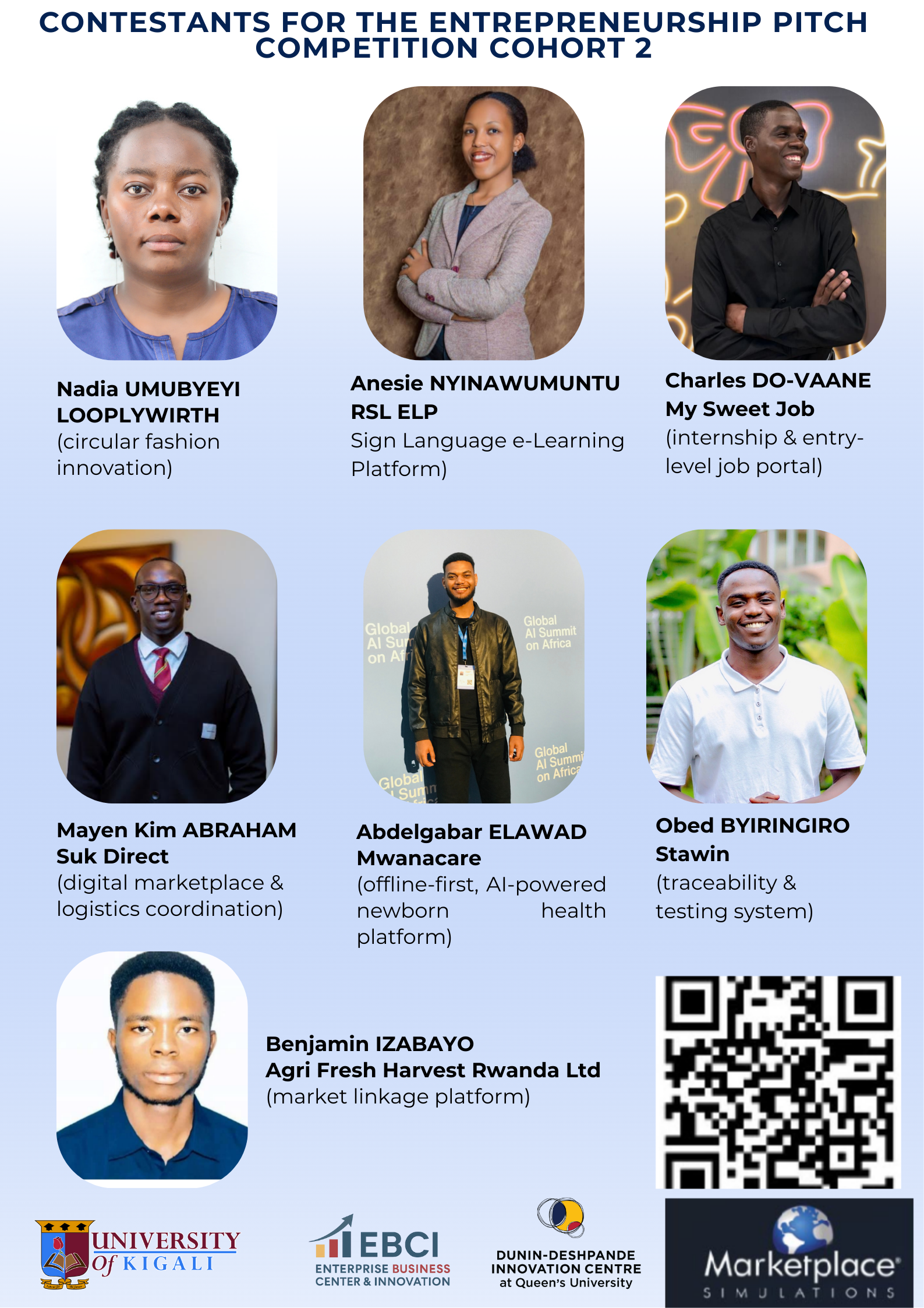 On behalf of the Dunin-Deshpande Innovation Centre at Queen’s University (DDQIC) and the Enterprise Business Centre at the University of Kigali in partnership with Market Simulations, we are delighted to invite you to d at our inaugural Final Pitch Competition.