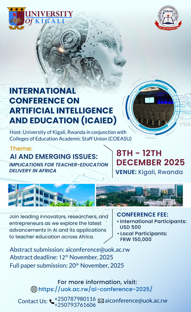 The International Conference on Artificial Intelligence and Education (ICAIED) 2025 brings together visionary educators, AI innovators, researchers, policy leaders, and industry experts to explore the evolving intersection of technology and teacher-education in Africa. Centered on the theme “AI and Emerging Issues: Implications for Teacher-Education Delivery in Africa,” this five-day gathering offers a forward-looking platform for bold ideas, evidence-based dialogue, and collaborative solutions.