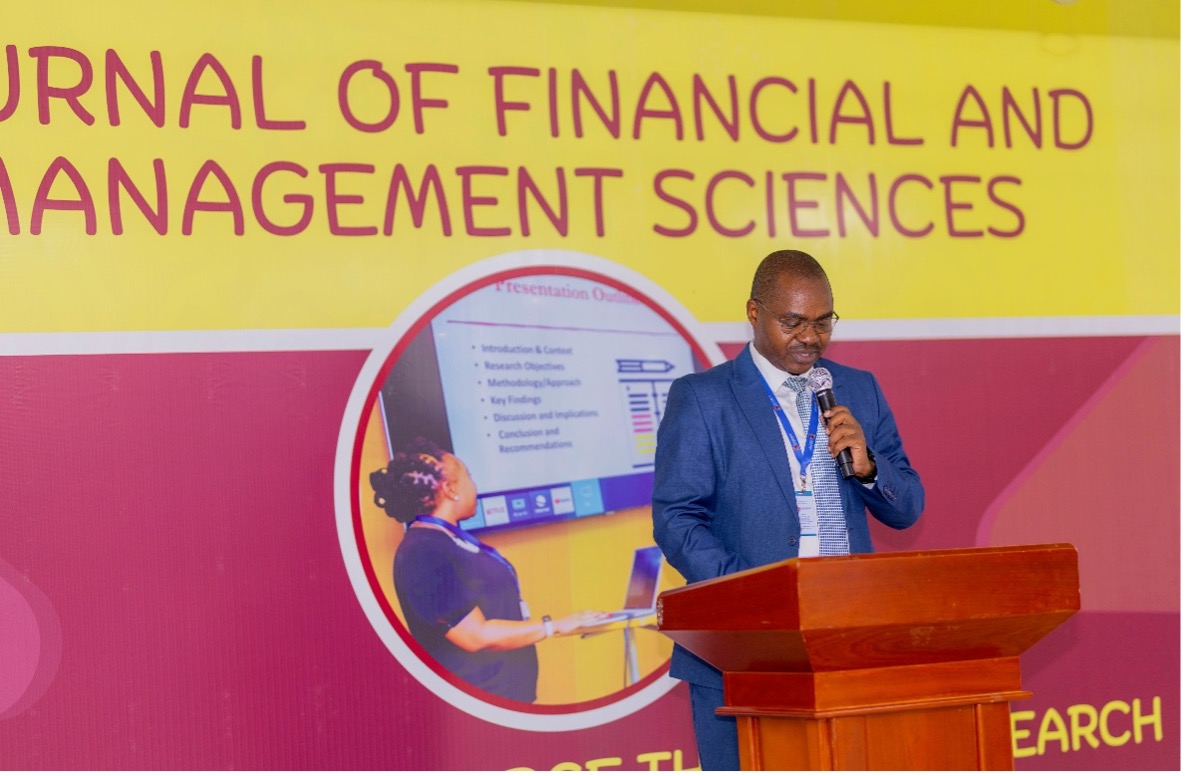 Dr Ronald Kwena, The Associate Deputy Vice Chancellor Research, Innovation and Enterprise and Editor in Chief, Journal of Financial and Management Sciences outlined the vision, scope and progress of JFMS. He asserted that anchored on UoK Strategic Plan 2025-2029, SDGs, Rwanda’s Vision, JFMS was established to foster Research, Innovation and Enterprise, Impact Policy and Society.